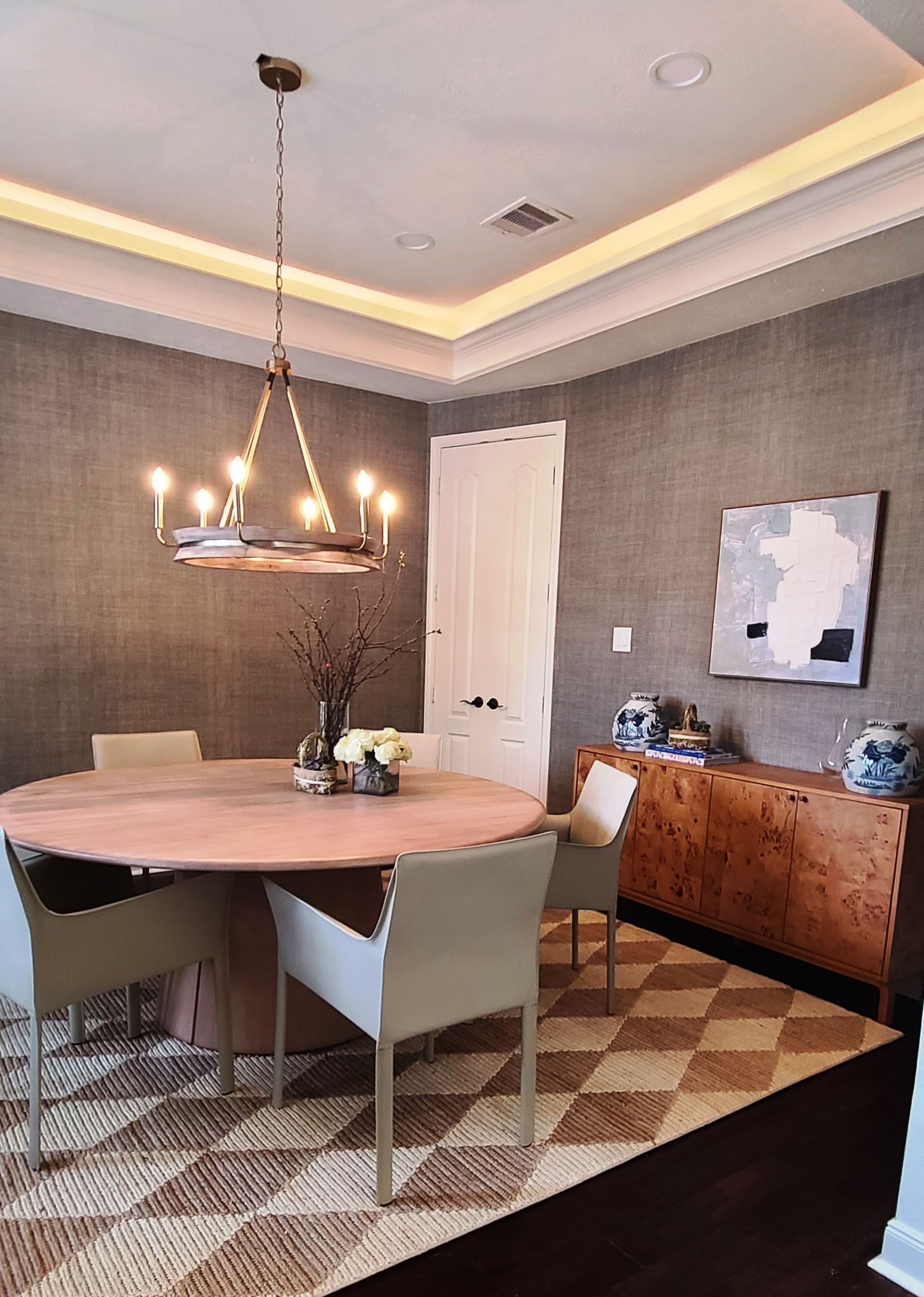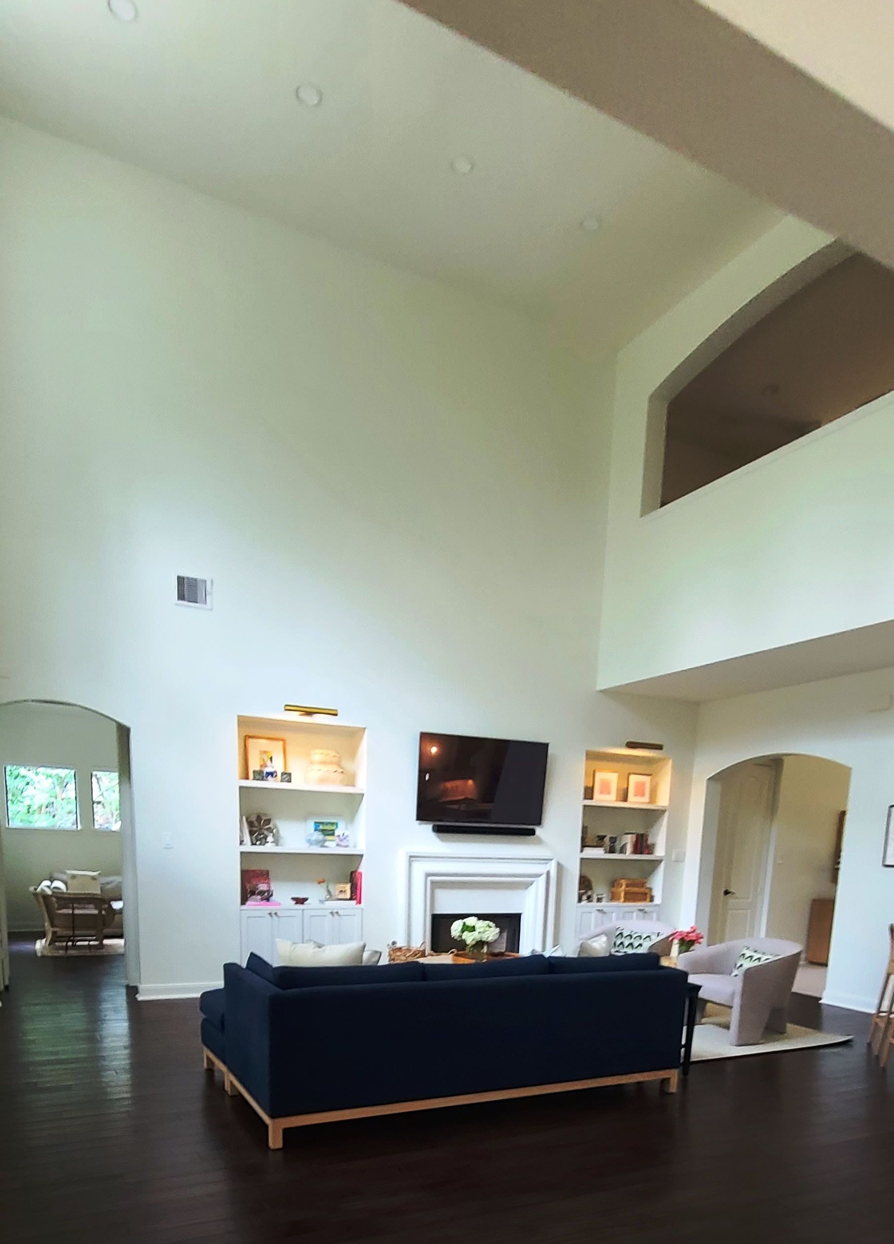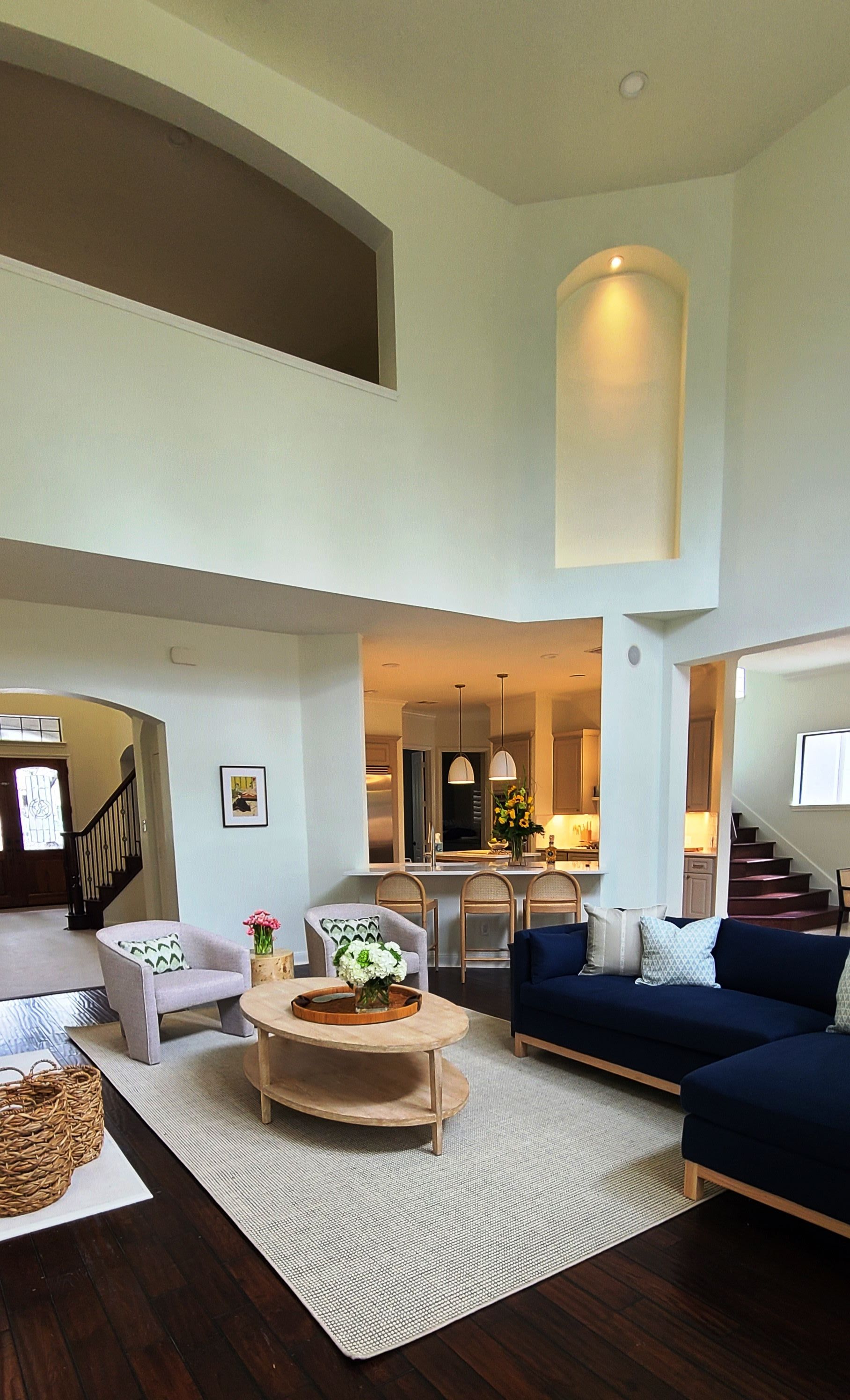 This comprehensive Design/Build renovation blended functionality with aesthetic refinement across both interior and exterior spaces. The scope included updated finishes in the kitchen and bathrooms, selective wall reconfigurations to create a more open living area, and the addition of custom built-in cabinetry in the playroom. Interior upgrades were rounded out with a fresh, whole-house paint scheme. On the exterior, outdated stone elements were modernized with a clean stucco veneer, and a new circular driveway was introduced to improve both curb appeal and access.