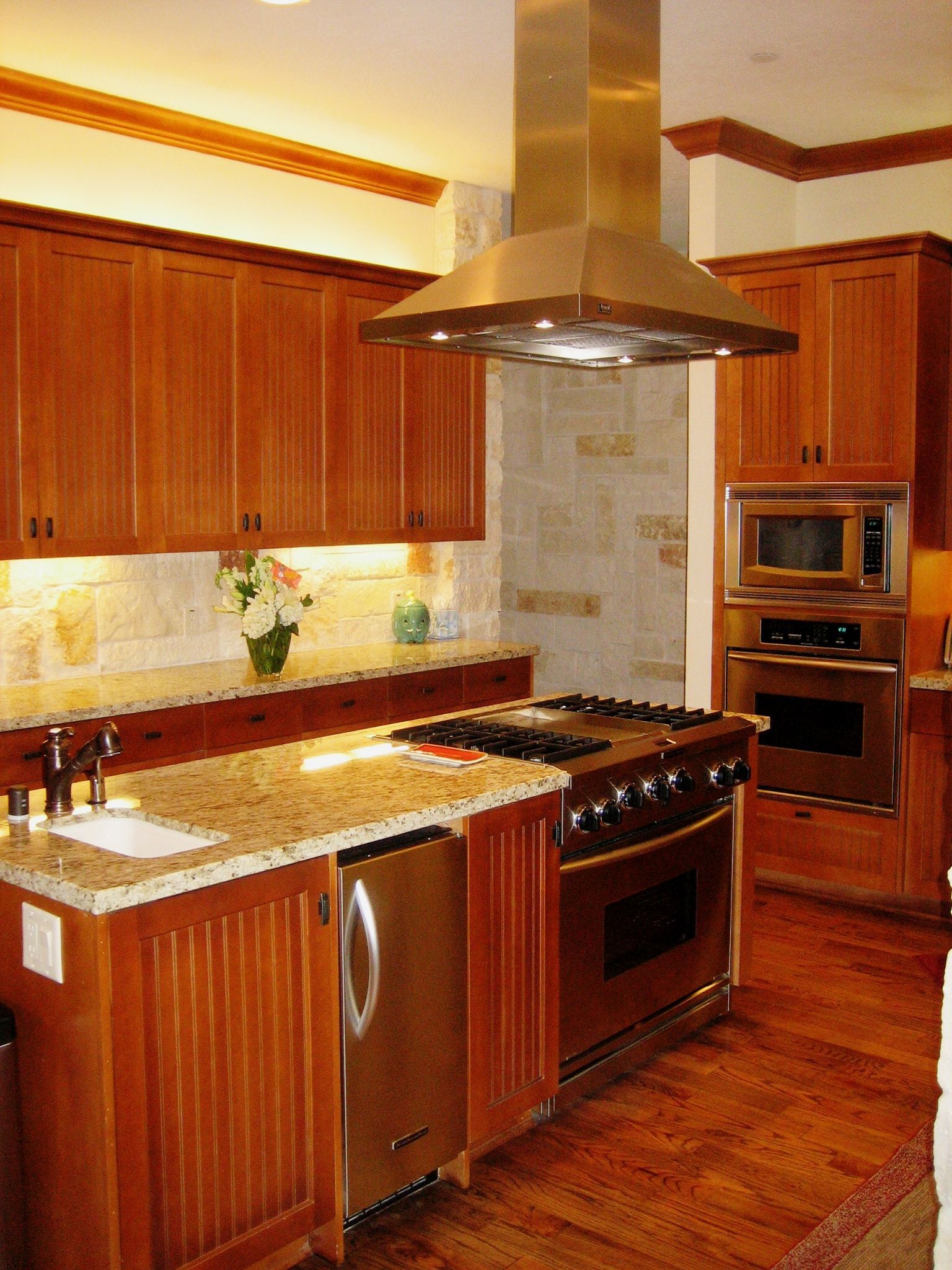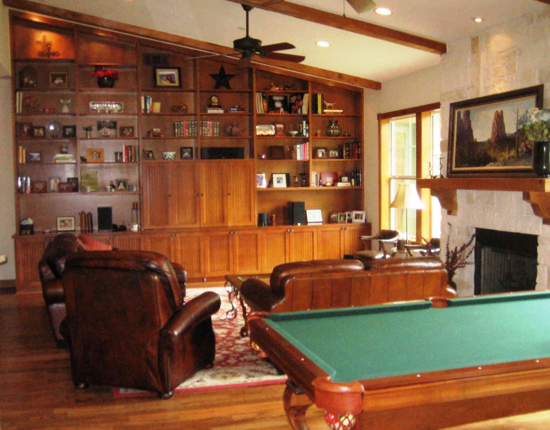 This Design/ build custom home built in the Texana style has custom stain grade cabinetry, upgrade stone and tile work, #1 red oak floors throughout, interior and exterior Texas limestone and stain grade cedar exterior trim.