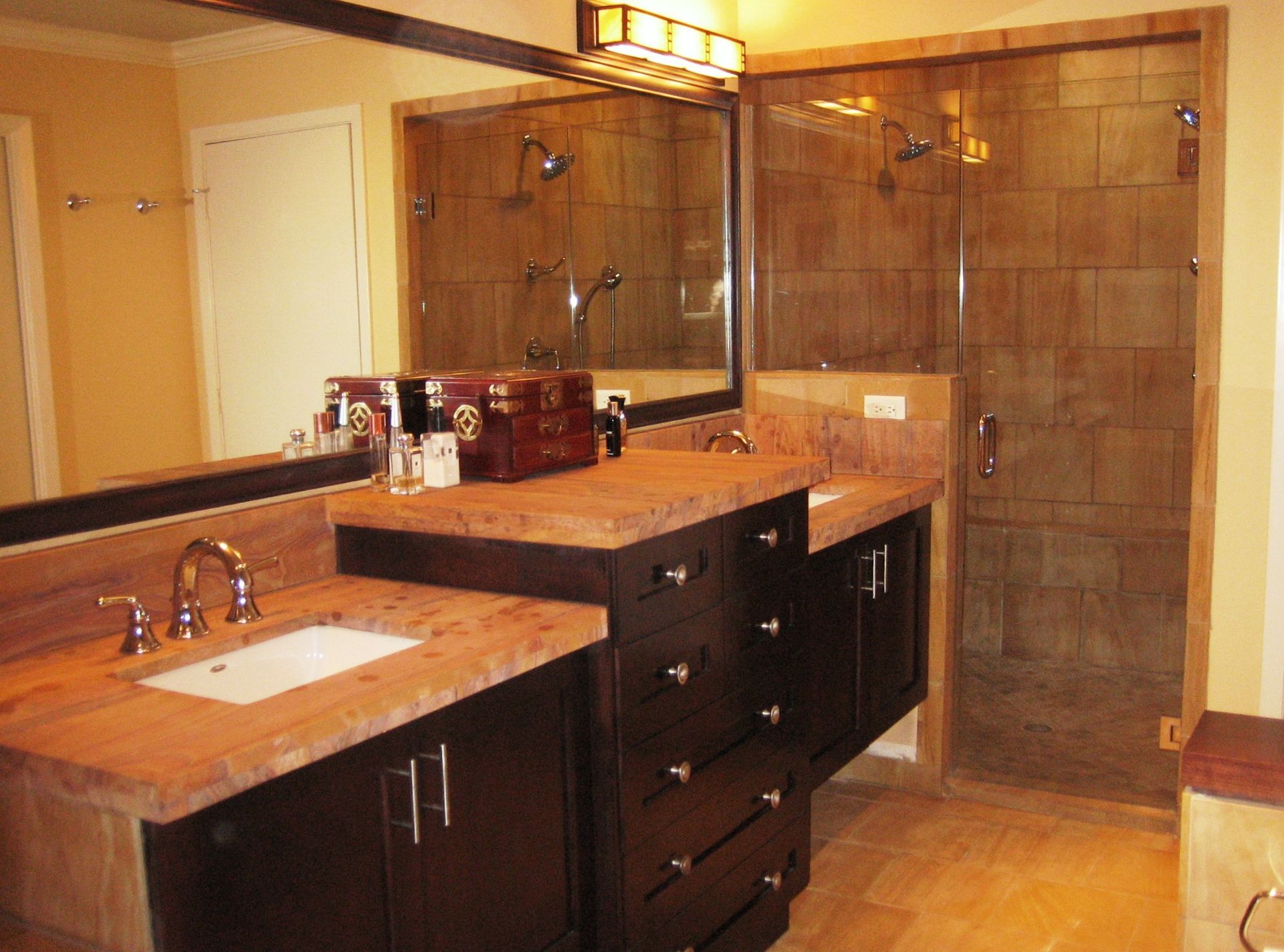 Having just purchased a 1950s ranch style house, the customer needed to update it to their eclectic style. This Design/ Build project opened up the existing floor plan and included a new kitchen, bathrooms and had custom American Cherry cabinetry throughout the house. Unique sandstone tile and cabinet tops were used in the master bath. The exterior had stucco veneer with stain grade cedar shake siding.
